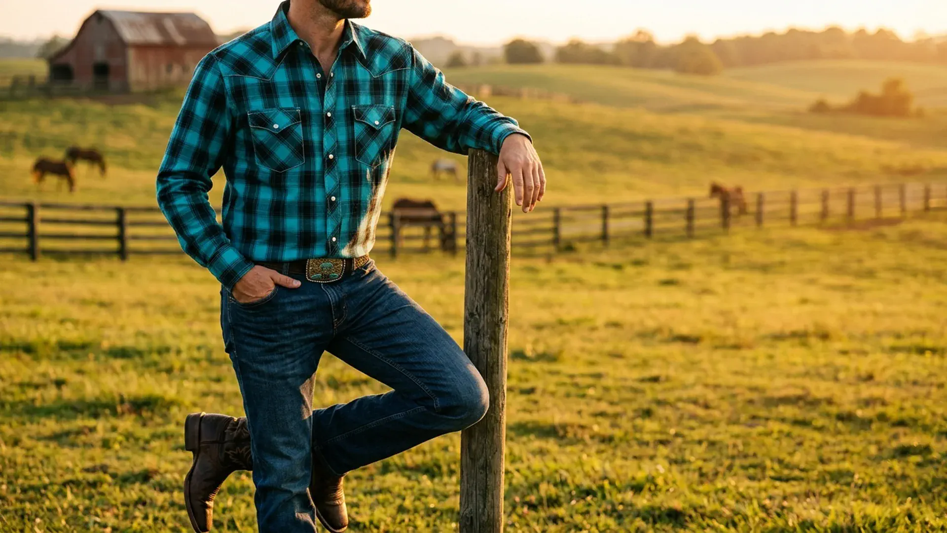 Western shirts feature snap fronts instead of buttons, yokes on the chest, and wider sleeves and shoulders designed for movement and rope work. Traditional construction tested in real ranch work.