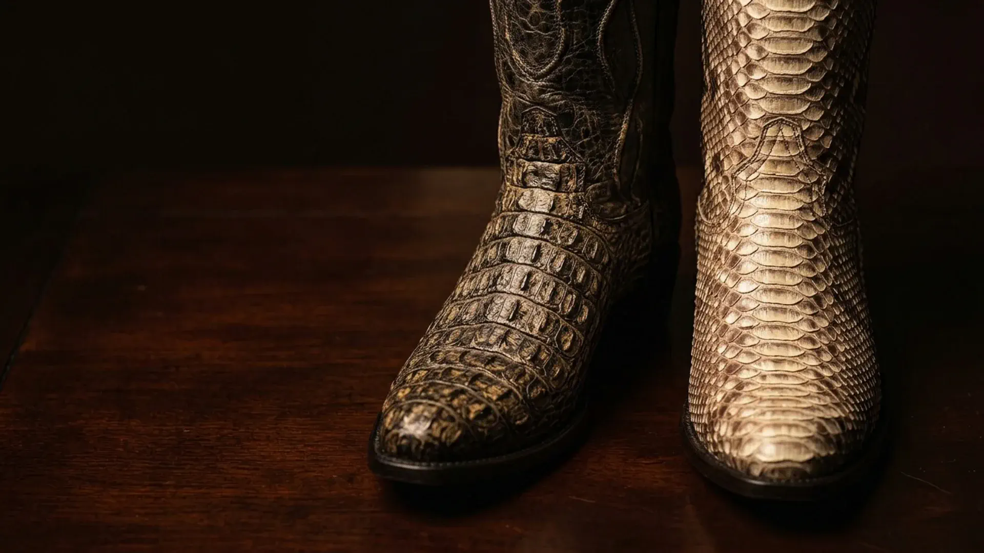 Caiman and python boots offer distinctive visual alternatives to traditional exotic footwear. Caiman features a more textured appearance, while python offers a distinctive scaled texture. Both are premium exotic choices prized by collectors seeking something unique and visually distinctive. These materials represent the next tier for those who appreciate exotic boots beyond the traditional alligator choice. Visit us in-store to see and feel these distinctive materials firsthand.