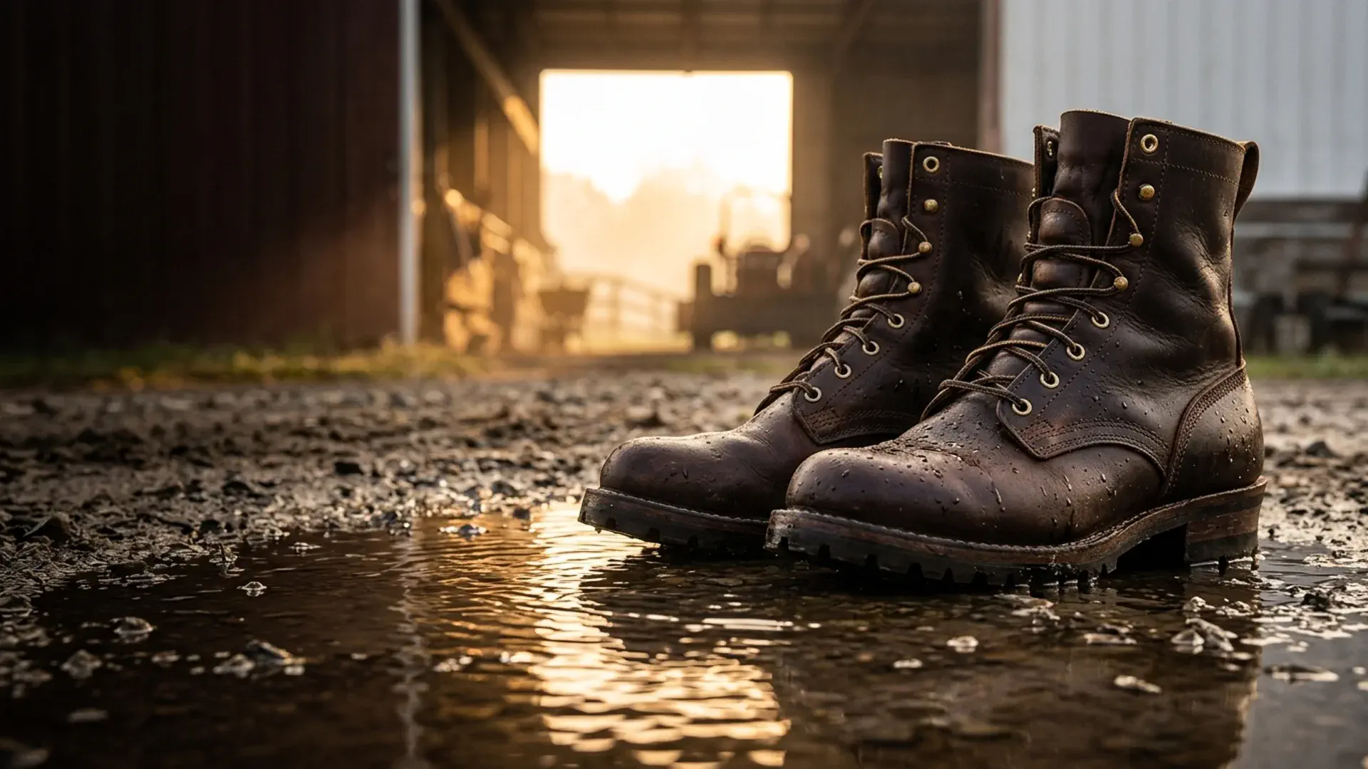 Clean and dry boots after wet work. Regular conditioning helps maintain waterproof coatings. We offer conditioning and sealing services in-store.